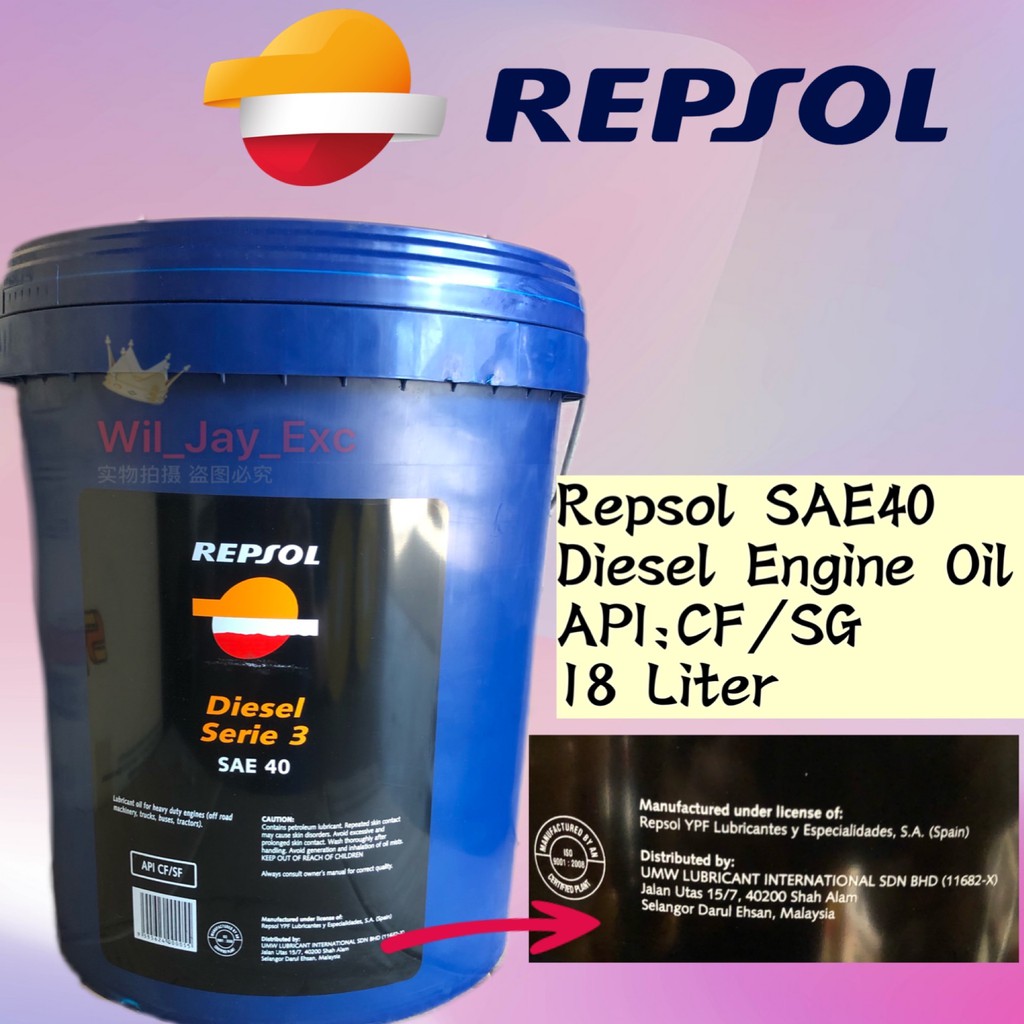 18 Liter Repsol Sae40 Diesel Engine Oil Sae 40 Distributed By Umw Lubricant Shopee Malaysia