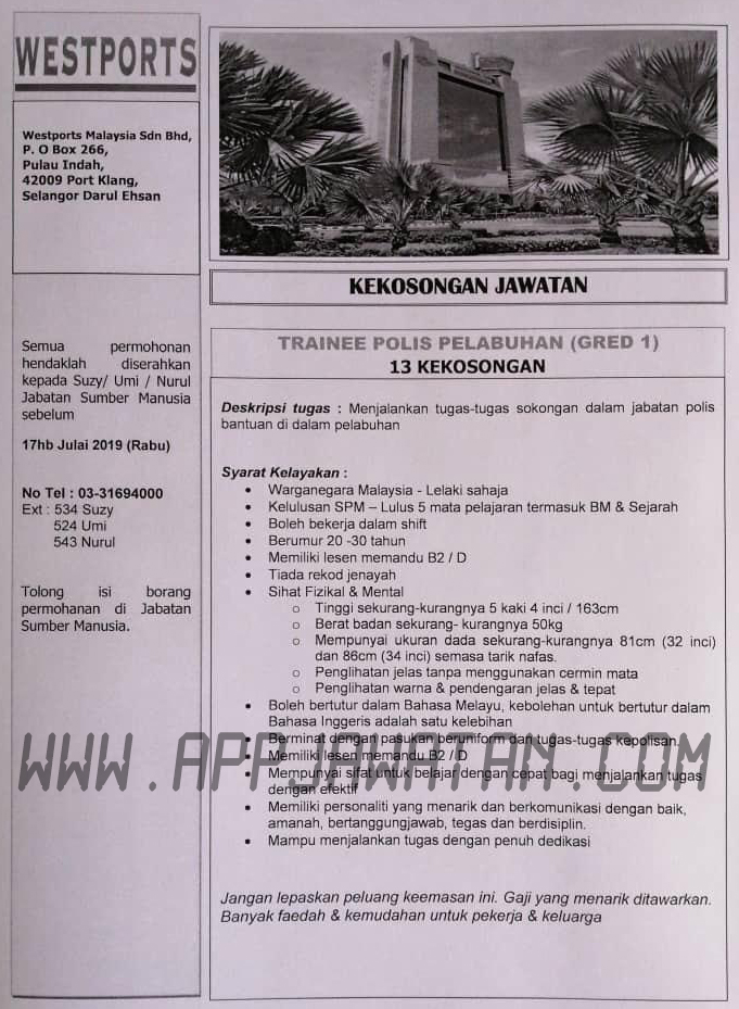 Jawatan Kosong Sebagai Polis Pelabuhan Di Westports Malaysia Sdn Bhd Appjawatan Malaysia