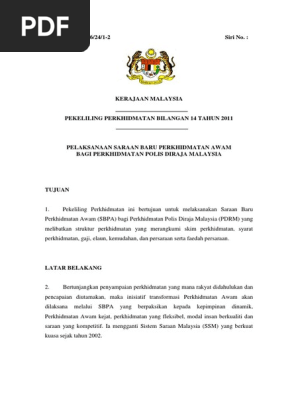 Pekeliling Perkhidmatan Bilangan 14 Tahun 2011 Pelaksanaan Saraan Baru Perkhidmatan Awam Bagi Perkhidmatan Polis Diraja Malaysia Pdrm 2135452149 Pdf