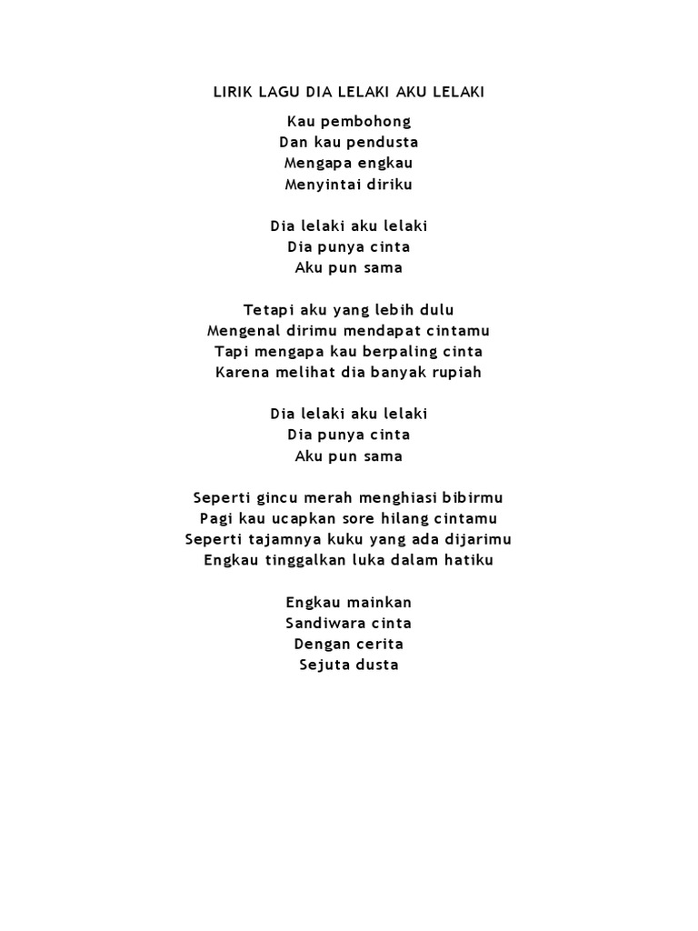 Lirik Lagu Dia Lelaki Aku Lelaki Doc