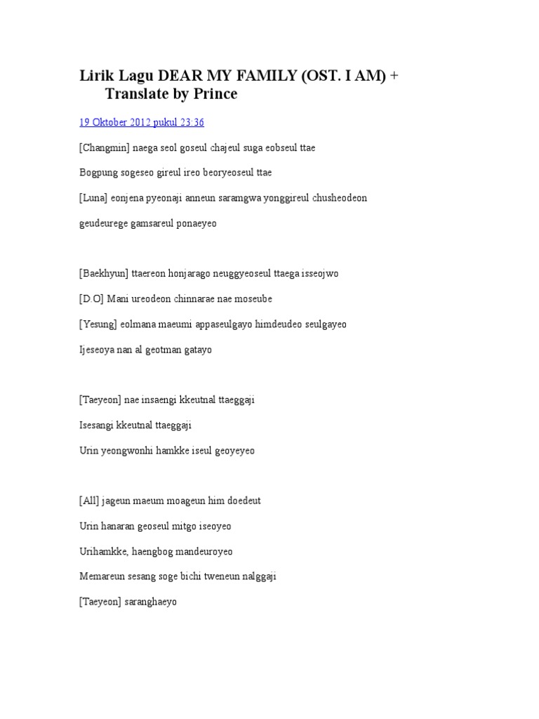 Lirik Lagu Dear My Family Artists