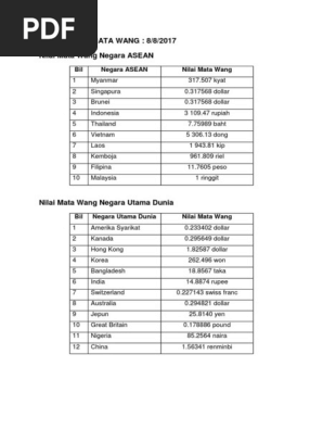 Menukarkan wang antara semua matawang seluruh dunia yang menggunakan sehingga kini kadar pertukaran. 0 ratings 0 found this document useful 0 votes 235 views 17 pages. Nah itulah gambar mata uang negara asean semoga bermanfaat.