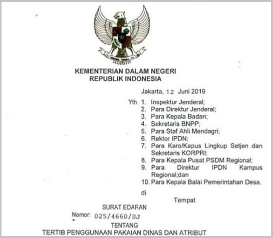 Surat Edaran Kemendagri Nomor 025 4660 Sj Tahun 2019 Tentang Penggunaan Pakaian Dinas Dan Atribut Pns Belajar Tanpa Batas