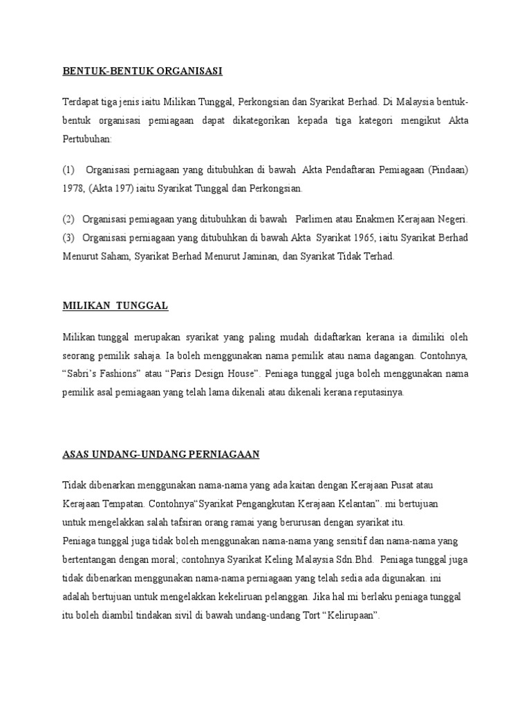 Bentuk Bentuk Entiti Perniagaan